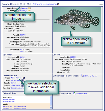 - The list of images for the species. In this case there are 10 images. If > 10, they will be displayed on multiple pages.