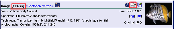 1. To supply external links for images, specimens, views, locations and publications already deposited in Morphbank, browse for the desired object and click on the edit icon.