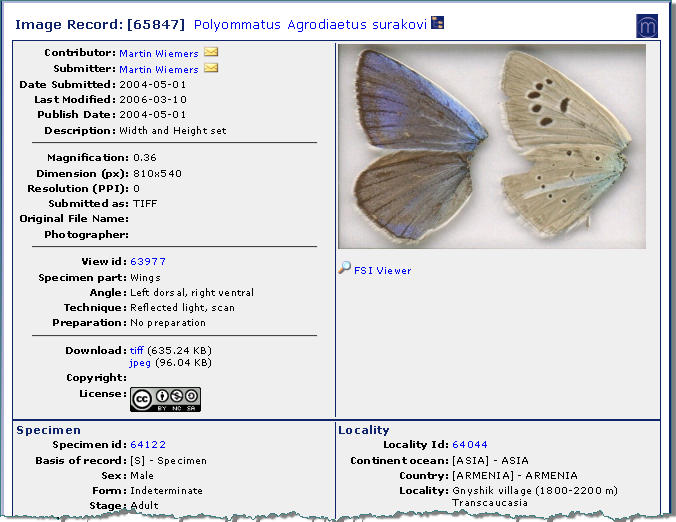 If the Contributor wishes to show the Image and Metadata for the Image, this is the Morphbank "Show" page for the Image Record.