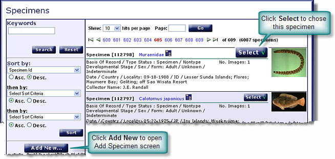 Enter the specimen from which the image was taken. To insure accuracy, specimen names need to be selected